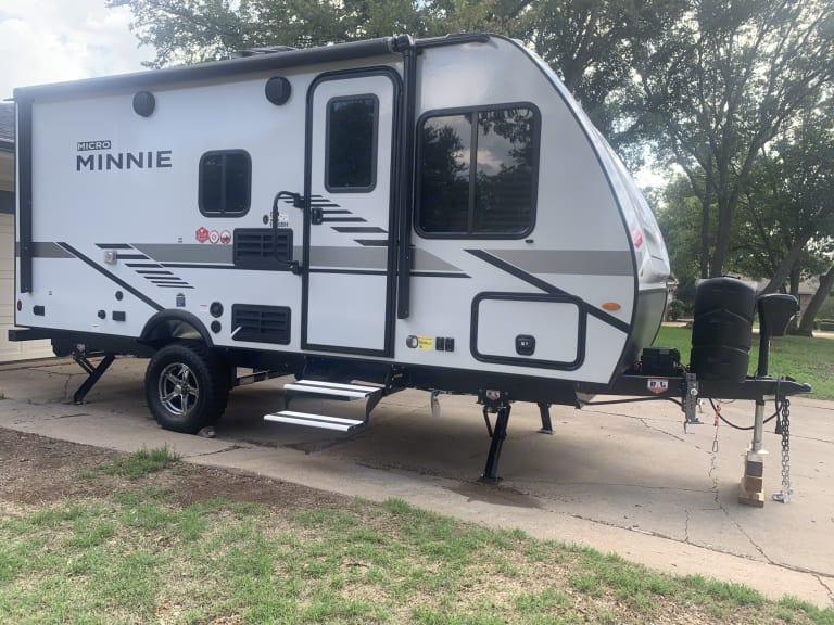 This 2022 Winnebago Micro Minnie is the perfect combination of light weight, simple, and luxurious. It has a dry weight of 3200 pounds making it the perfect rig for a larger SUV or half ton pickup. Pulls like a champ and is as comfortable as any other camper out there. Set up is simple with an electric powered jack and electric stabilizers. Comfortably sleeps 5. Has a Bluetooth radio that can play both outside and inside. TV that has a satellite to pick up local channels. Microwave, stove top, AC and heater, inside AND outside shower, awning, 2 propane tanks. All the hoses and electric hookups you could possibly need. Fresh water tank is 31 gallons. Black and gray water tanks are 25 gallons. Has propane quick connect to hook up a propane powered grill. Tons of storage. This is a very easy and cool camper that is just waiting for you to rent for a weekend getaway or long haul across the country. What's includedFresh linens, camping chairs, small table, cookware, utensils, coffee maker, cleaning supplies. Delivery and pickup available upon your request. Other things to noteNo smoking.