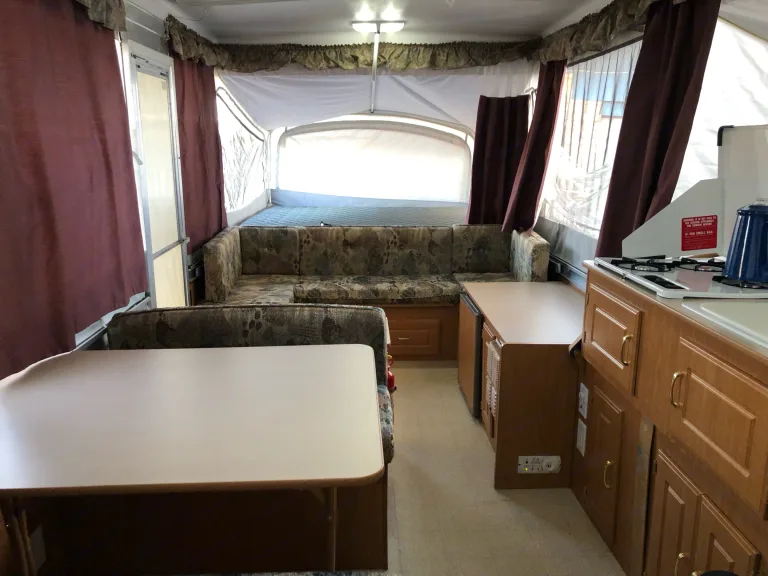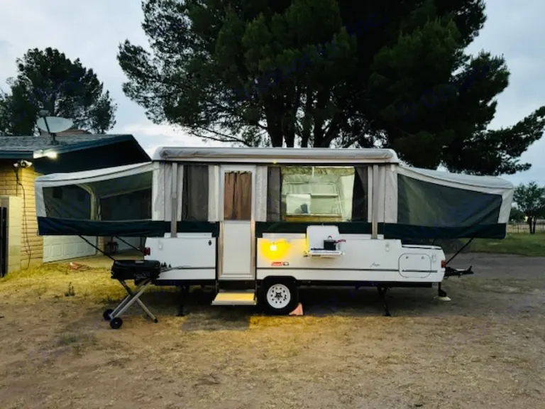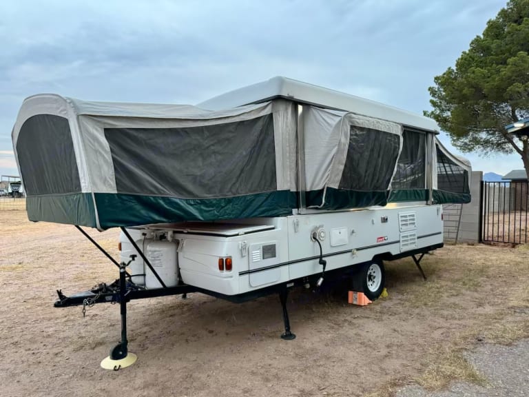 Lightweight Coleman Mesa can be pulled by almost anything with a tow package! 19'x7' extends to a spacious 25'x10'. 2 King-size beds at front and rear, convertible dinette bed, and sofa slideout bed sleeps at least 6 comfortably (up to 9). 20 gal water tank and 6 gal water heater. 2 upgraded 30 lb propane tanks, 2 upgraded deep-cycle batteries to give you untethered power for days and days! Refrigerator, single sink, USB outlets, and 23 cu. ft. storage space in the front for all your camping and fishing gear. What's includedIncludes 2 inch trailer hitch, with sway control bar. Fully stocked with bedding, pots/pans, dishes, utensils, portable toilet & tent, toiletries, etc. so all you have to do is hook up and go make memories!RecommendationsLocal attactions include:
