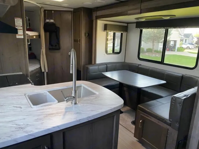 This nearly new family friendly trailer has all the amenities including an outdoor kitchen, awning, outdoors shower, and includes everything you need to camp in comfort. TV with DVD player and kids movies included as well. Brand new Nectar Premier queen bed up front. Beverage fridge can be stocked with some Duluth craft beers/ciders for a fee.Camper is only available for delivery/pick-up. What's includedFresh linens, silverware, hose, hot dog/marshmallow roasting sticks, and outdoor rug. RecommendationsAnywhere near lake superior. Other things to noteThis camper is for delivery/pick-up only. I work a day job, but it's flexible to accomodate drop off and pick-up, cheers!