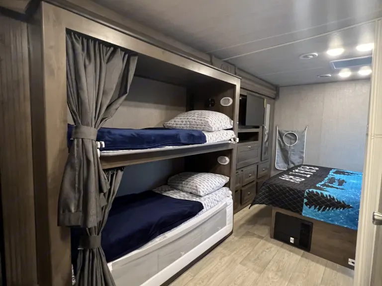 This RV has so much room! We had four adults and two teens. The bunks in this RV makes a huge difference in being able to spread out and not feel on top of each other.