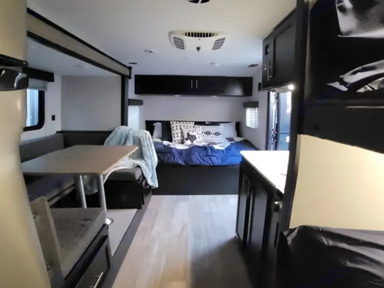 Download our App and set everything up by the time you open the door. Features include Smart Tv with indoor and outdoor mounts with outdoor speakers with subwoofers for optimal sound experience. 4-6 chairs provided, cornhole game, Hammock with lights, cooler bucket for your drinking pleasure, outdoor cook top, fridge, shower and prep area! We come complete with linens Beddy's (Bed Easy) system for fast make up so you can spend more time on play on our queen bed. Sleeping Bags for bunks and a double cuddle bag for dinette conversion. 6 luxury pillows provided and two throw blankets for those again cuddle opportunities. Towel set for up to 6 guests with luxury soaps and hair care. Feminine emergency stash is provided (please don't flush) along with mirror and hair dryer. We believe Coffee is life. That is why we provide a Kureg with Black Rifle Coffee rounds and also blank K cups for your blank coffee! Pots, Pans, dishes, knives cutting board, waffle maker, toaster oven... Bring your culinary skills we are ready! Generator upon request! Feel free to call us with your questions for yourself, friends, family and fur babies!What's includedGet ready for some comfortable accommodations after you play outdoors with your RV friends at your favorite state park campsite. You can sit and talk under the power awning all night thanks to the LED light strip, or you can play games at the U-shaped dinette slide out. The dinette also doubles as extra sleeping space if your kids' friends want to stay the night. And everyone can enjoy some privacy when getting ready in the toilet and shower room. The chef will love having a cooktop and microwave to make meals and snacks, as well as a sink and counter space to clean up everything afterwards.The Wolf Pup is lightweight and easy to tow with ample storage for all your things. The aerodynamic radius front profile allows for better gas mileage. You'll enjoy features such as USB charging stations to keep everyone's phones charged, a power awning with an LED light strip allowing you to stay outside longer, a seamless countertop, and an outside shower with hot and cold water to clean the dishes or even yourself, plus more!Cherokee Back up Camera System