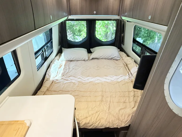 I really enjoyed this camper van! The bed was very comfy. It was the perfect space option for my wife and I, and it handled very well! It was also stocked well with folding chairs, cookware, tv hookups, etc. I felt very fancy in this camper van!