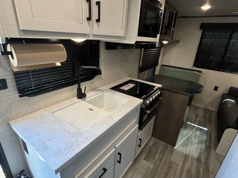 Spacious Interior: Thoughtfully designed layout with ample space for family activities and relaxation.Fully Equipped Kitchen: Includes a two-burner cooktop, microwave, refrigerator, and plenty of storage for your cooking essentials.