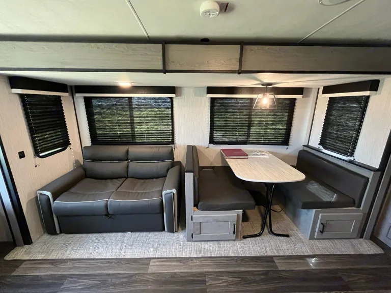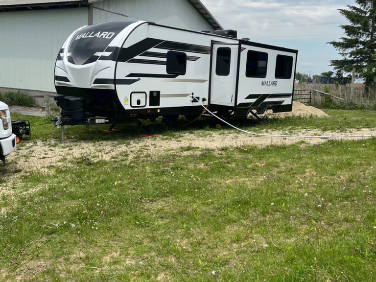 Brand new mallard M27 travel trailer with all the bells and whistles. Is like a home away from home. Will sleep 6 people comfortably with the fold out couch, folding dining area, and a wonderful king size bed. The kitchen and fridge are great for home cooked meals and the electric/gas water heater makes for a great shower no matter how many people go before you. Would be great for families and couples alike to get out of the house for an unforgettable adventure.What's includedFresh linens, paper towels, soap, towels, wash clothes.