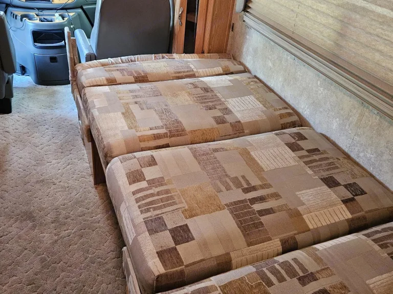 This unit has a rear corner bath with lavatory, linen cabinet and shower, rear corner kitchen with a 3-burner stove, double kitchen sink, refrigerator, overhead cabinets, and pantry. It has a hide-a-bed sofa and table that flattens for a bed. Lcd tv above cab area. Drives like a dream and easy to park and backup! Gasoline generator, excellent ac and comfy sleeping area! New awning, brand new tires, oil change up to date. Coffee, tea, kettle and toaster included. Start your adventure today!