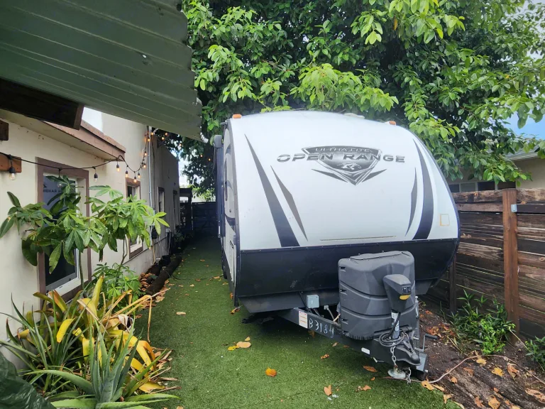 This is my beautiful highland ridge camper that I am offering while not in use in my backyard oasis. The camper is in prestine condition and well maintained, it sleeps up to 4 if you put the kitchen table down. There are also to massage and warming chairs. A full kitchen and fridge for you to enjoy. The TV comes equipped with a firestick. All an all its a great camper with tons of head room a huge bathroom and very comfortable.