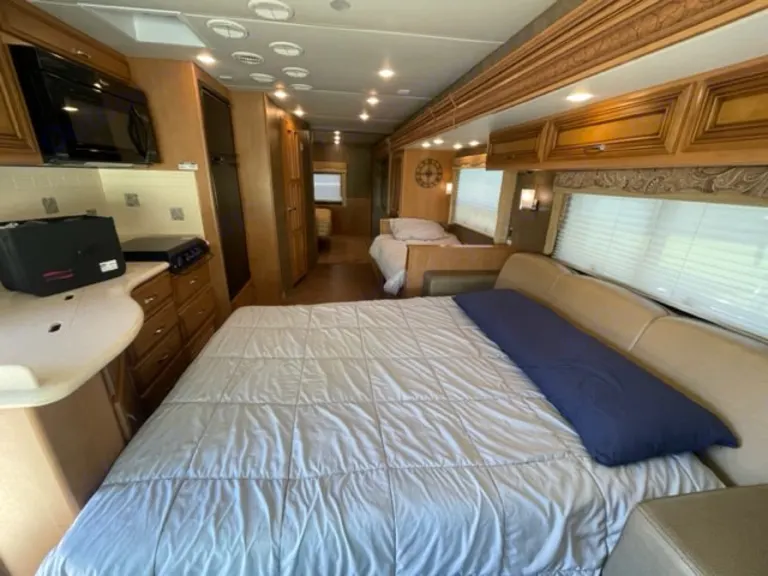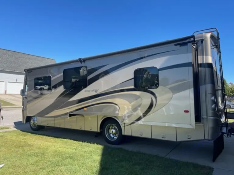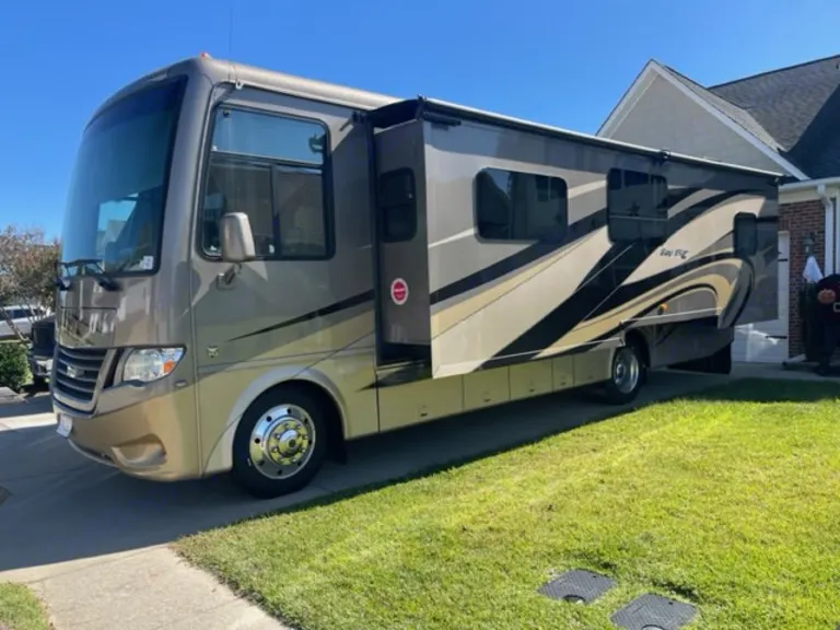 You'll have everything you need in this home away from home in this gas powered Class A! This 2014 Newmar Baystar model 3124 is in pristine condition and has style, class, and luxury rolled into one of the best built Class A! Master Bedroom slide out and main living area slide out. The open floor plan provides a lot more space in the living room/dining room area than the pictures capture. With two queen size beds and also a twin bed, you can comfortably sleep 5-6 people. From the convection oven to the full size fridge you'll have plenty of the home kitchen options. All of the controls for the generator, slide outs and auto-leveling kit are all easily accessible from inside the RV. Fully electric allowing you to control everything with the touch of a button. 2 TV's inside the home and another TV for when you're relaxing under the awning. Plenty of storage inside and out. We don't offer delivery at this time so you will need to pick up at our home. You are welcome to leave your car in our driveway or tow it behind the motor home if your vehicle has the correct baseplates. Your hassle free getaway is just a click away! Your family will love it! Book today and begin making memories that will last a lifetime!What's includedFresh linens provided including pillows, cooking utensils, camping chairs X 4, camping table, outdoor rug and full kitchen accessories - enough to cook a full meal! Enjoy a game of cornhole or outdoor Jenga. Enjoy games also included!Other things to notePLEASE NO SMOKING OF ANY KIND IN THE RV!