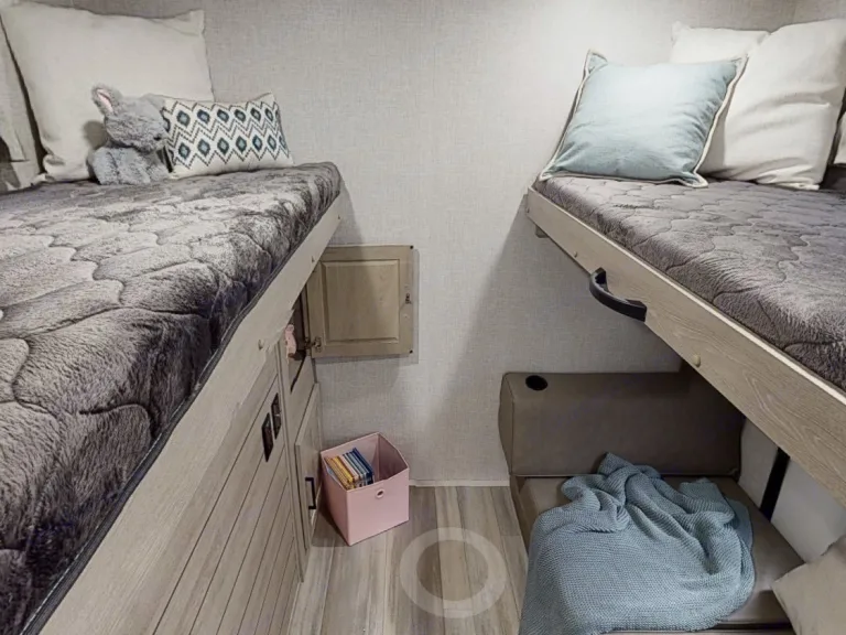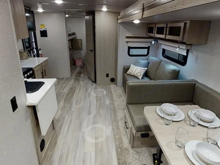 If you are looking for an amazing Brand NEW camper for your next trip this is it!!!! We just got this camper and we would love to share it with you! The master bed is a queen bed with lots of room and storage in the master bedroom. The bunk room has 2 beds and a fold out couch with plenty of room for all the littles. The dinette folds down into a bed also and the couch is 2 amazing theater seats.It will come completely stocked with pots, pans, silverware, cups, plates, bowls, coffee maker, coffee, toaster, towels, sheets, extra blankets and more!!We are very meticulous about our cleaning process and everything is ran thru the washer and dishwasher after every rental. You will be sure to get a unit that is clean, stocked and ready to go! What's includedA complete kitchen. Plates, bowls, pots and pans, cups, glasses, coffee maker, coffee, toaster, griddle.All sheets and blankets are provided along with extra blankets. We have camping chairs for outside along with an outdoor rug to help with tracking in all the dirt etc. RecommendationsWe are more than willing to set this whole unit up for you!! We deliver and setup all the way thru the Black Hills and beyond! If your trip is taking you elsewhere let us know we can work out the details. Other things to noteWe would love to share this unit with you and would just expect for it to be taken care of as we do!