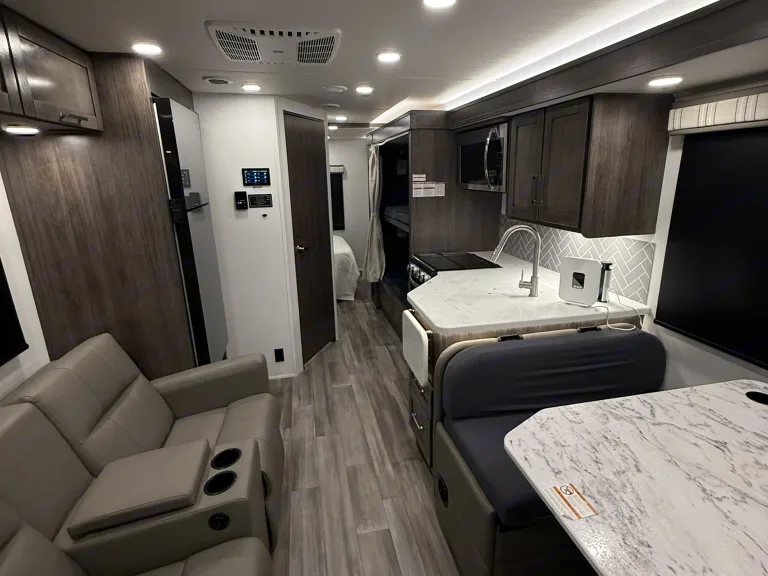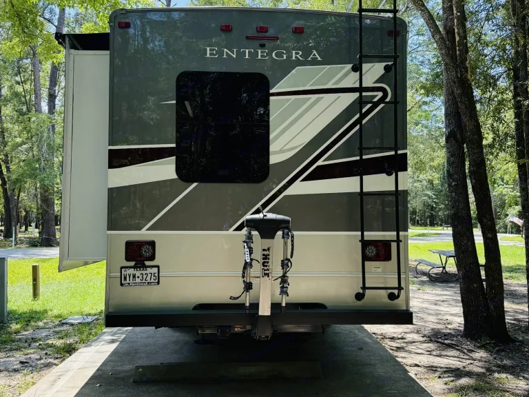 Meet Stella — Your 2026 Luxury Home on WheelsStella is the newest gem on the road—a 2026 Entegra Coach Esteem 31F, the upgrade from the Entegra Odessey, where luxury meets engineering excellence. Offering a smoother and quieter ride than any other Class C, she’s ready to elevate your adventures.Why She Stands Out:Newest model year, cutting-edge comfort: Stella is brand-new for 2026—enjoy luxury with the latest design, tech, and craftsmanship.Silky on the road: Equipped with the exclusive E‑Z Drive Elite ride package computer-balanced driveshaft, Koni FSD shocks, front and rear stabilizer bars, Hellwig helper springs, and rubber isolation mounts for a smoother, more stable, and quieter journey.Smart living made simple: Control lighting, awning, Hvac, and more with the Bmpro Total Coach Control System—via an intuitive wall-mounted touchscreen or mobile app.Built for comfort: Dual 15,000 BTU A/C units keep the temperature just right.Safety & visibility first: Includes rear and side-view cameras, frameless windows, and heated, remote-controlled side mirrors—keeping you secure and aware on the road.-Comfort & Space-Sleeps 8 comfortably across a rear private bedroom, bunk over cab, full-wall slide bunkbeds, and convertible dinette/sofa.Spacious layout features a full-wall slide for maximum living area flexibility.-Entertainment & Convenience-Touchscreen tech controls your environment and RV functions with ease.Smart TVs throughout—stay entertained no matter where you are—plus an electric awning with integrated LED lighting for fun outdoor evenings.Premium kitchen comforts include a residential-size microwave, solid-surface countertops, Furrion all-in-one cooktop/oven, plus large fridge.What's includedUNLIMITED MILES! Enjoy going wherever your heart desiresFREE 5G Wi-FiPowerSurge protectors (Watchdog)Easy Connects water systemFresh linens, pillows, and memory foam toppers (toppers only for queen bed and queen bunk) 🛏️*4 bath towels