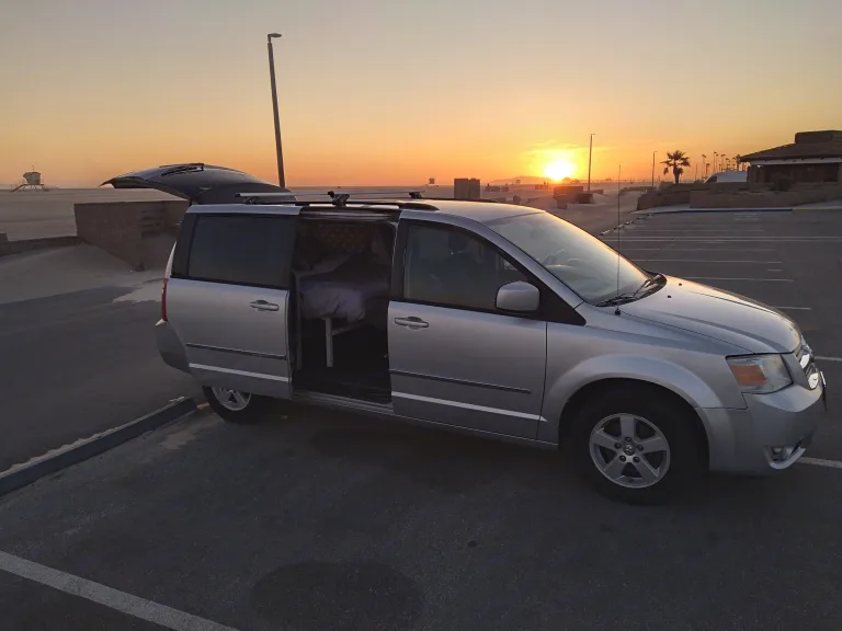 Newly converted Dodge Grand Caravan. Clean, easy smooth driving van that can go anywhere your imagination will take you!! Perfect for long road trips, festivals, tail gating or discreet city camping. What's includedNEW bedding, NEW Keni cooler, Coleman Stove, cooking utensils, bowls , cups, fresh beach towels. 24mpg Highway, 18mpg city. lots of under sleeper storage. Roof racks, 24mpg highway 18mpg city. Three charging post and one 110volt standard plug.