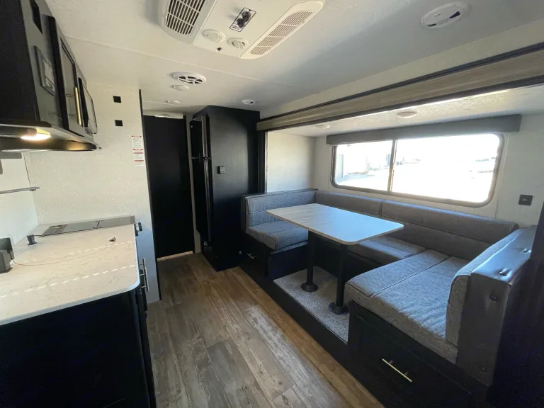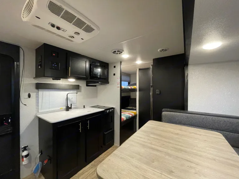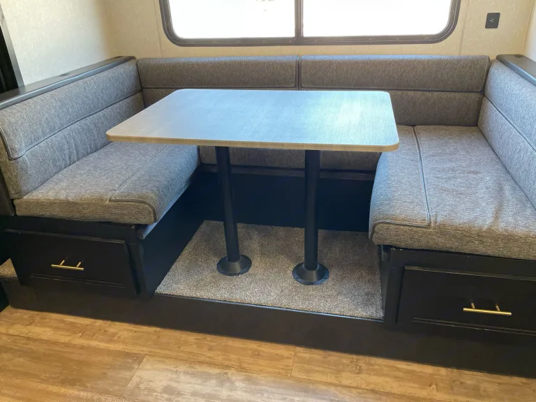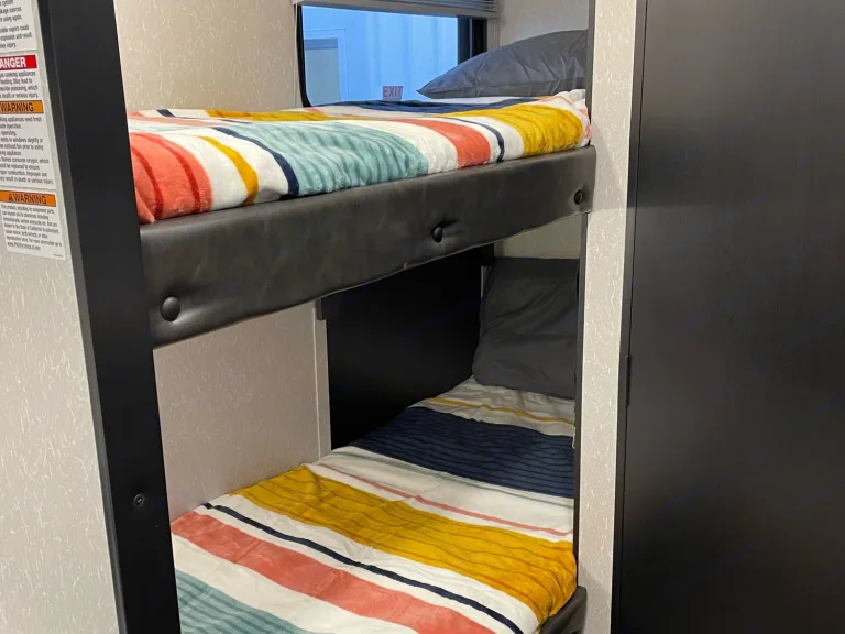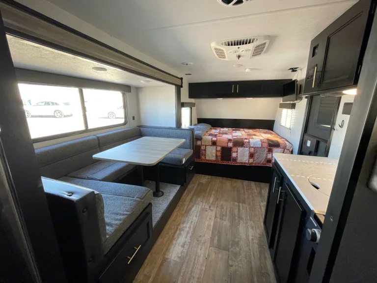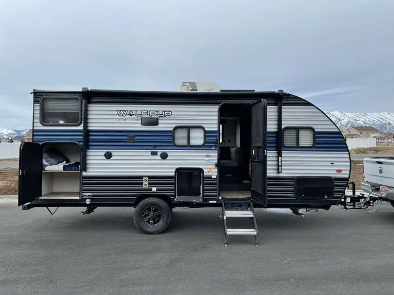 Have fun making cherished memories in our new 2021 Lil’ Blue Pup! It sleeps up to six people with an extremely comfortable full queen that fits 2 taller people, full dinette bed for 2 kids or 1 adult, 2 bunk beds, and kitchen table seating for 5-6.Avoid the port-a-potties with this private bathroom and indoor/outdoor shower! Keep your food/drinks cold with the large fridge & freezer inside AND optional mini fridge outside(Only works on shore power or generator) for quick drink access. You can cook up meals in the kitchen with the gas stove, sink, and microwave; or outside with the optional camp chef grill that will run through the included 20lb propane tank.You will stay nice and toasty with the fantastic heater for cool nights (runs through included propane) and cool off in the hot summers with the AC unit.Stabilizer hitch provided if it levels with your vehicle. If it doesn’t level with your vehicle, a small fee will be charged for adjustment of the hitch. My tow vehicle is a lifted 2014 Ram 1500 that works perfect. 7 pin plug required. Trailer brake is required with your vehicle.We have many other camping items that can be added to your rental, see available options below. Our goal is to provide everything you need to ensure the best experience possible!What's included- Bedding for all beds + additional blankets