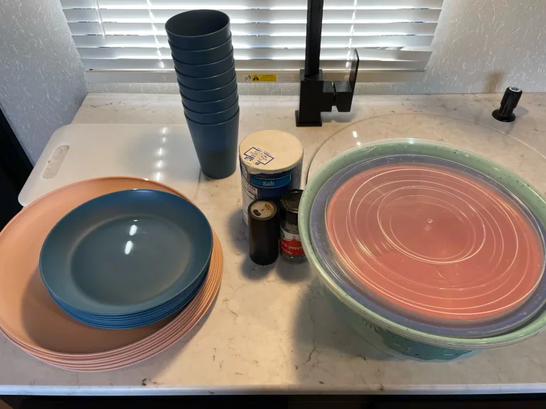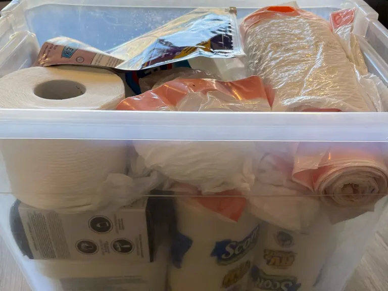 - Cleaning supplies(broom, dust pan, Clorox wipes, Lysol, mop, sponges, washcloths, hand towels, toilet cleaner, dish soap, dish drying mat)
