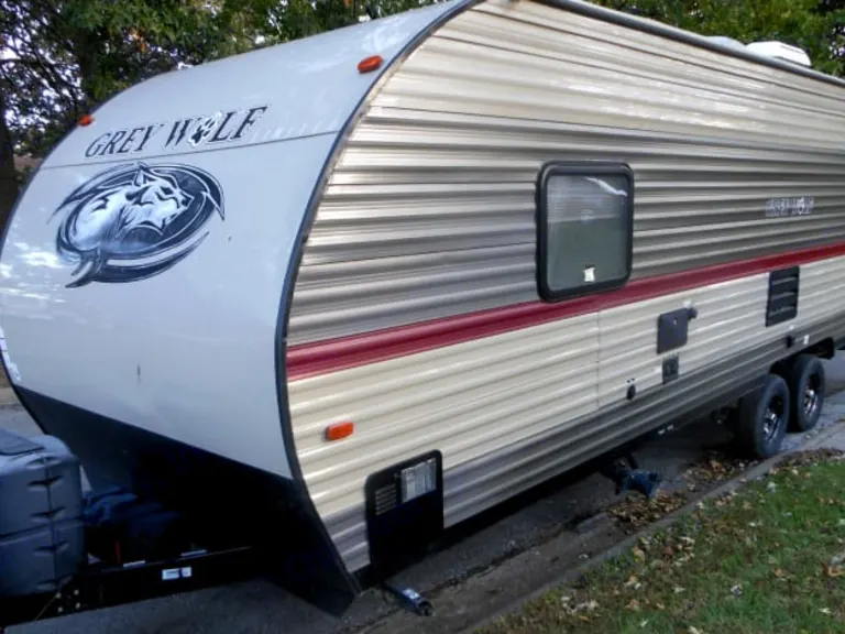 This Forest River Grey Wolf 22RR is a great toy hauler. It will be thoroughly cleaned and sanitized. Fold down sofas on each side of the garage. Sleeps 4 easily, I have actually had someone put a cot in there for a 5th sleeping spot. Bluetooth connection to the radio. TV with mount locations by pantry and outdoors. Indoor and outdoor speakers. The rear ramp has cables to support it level with the camper floor for a patio space. I even have a short fence that can attach to the ramp. It has an outdoor shower and of course a shower inside also. The Forest River Grey Wolf 22RR also has a big pantry so you can stock up for the long trips. Dual fuel refrigerator operates on propane or 110VAC electricity. Propane cooktop and small oven as well as a microwave for cooking. I also have included a Coleman NXT 50 propane grill with a hose to connect to RV propane supply. Generator not included, but rental of one is available as well.