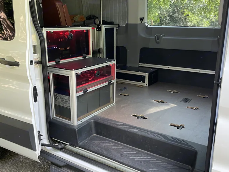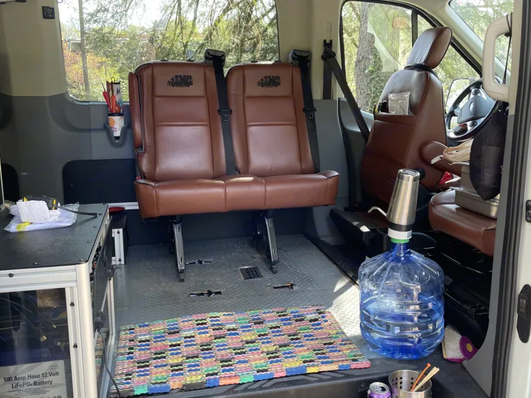 Our Vandoit LIV seats 2-7 passenger (with seatbelts) and comfortably sleeps 5+. This is an extremely versatile van with a professionally built modular design allowing for endless options to meet your needs for your adventure. Please feel free to email with any questions or requests.It has heat, A/C, a hot outdoor shower, TV with a DVD player; a high-output stereo system; accent lighting, and plenty of height to stand up even for those over 6 feet tall.The van has a bed platform that you can change the height of bed adjustable by a electronic hydraulic lift. Adjustable bed height allows you to change height positions based on cargo needs (like bikes without dropper posts!).The van has a “garage” below the queen bed which also has a gear slide to store gear but slides out for easy access, or use it as an additional sleeping space for up to 2 adults.This van has everything with the electronics station, conveniently located in front of the platform bed doubles as a step onto the bed and allows for easy manipulation of electronics including: DVD, solar panel system, audio, inverter and charging station.This van is equipped for all of your adventures, including those off-road. It has an upgraded suspension with additional 2" lifted ground clearance on the fly 4x4, and front light bar when you need it. What's includedAdd ons are free! We have everything you need! Email for logistics and we probably have what you need! Such as, fresh linens, pillows, camp chairs, coffee maker, electric kettle, cookware, propane stove, hammocks, lawn games and more!Other things to noteEasy to drive. Comfortable. Easy to park.