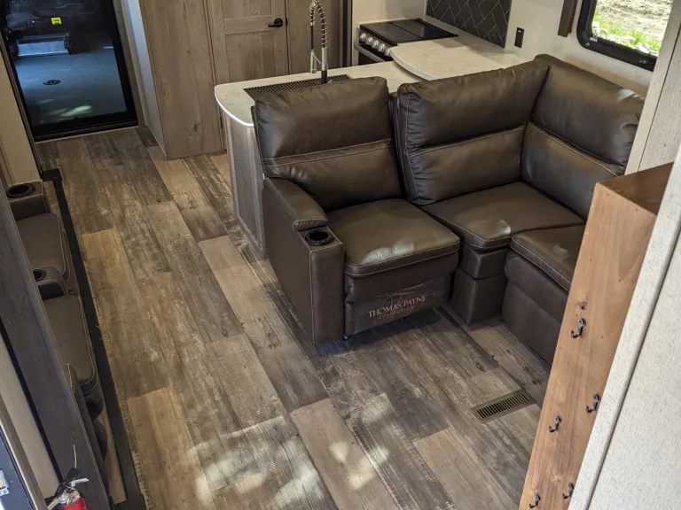 Beautiful & roomy 2021 Keystone Raptor 413. It has a Washer & Dryer, 1/2 bath located between the kitchen and garage, a 3/4 bath off the master suite with walk-in shower and Premium Queen Mattress in the Master Suite. Twin bunk in the loft is fun for kids. The living area has three leather recliners with heat and massage features. Three AC units keep this rig cool on hot summer days. Electric fireplace in the living area takes the chill off. Flat Screen TV in the Living Area, Master bedroom and garage. Blackout window shade making sleeping in easy. Enjoy the outdoor deck off the garage with a railing, stairs and awning. Has 2 additional awnings, one above each door.