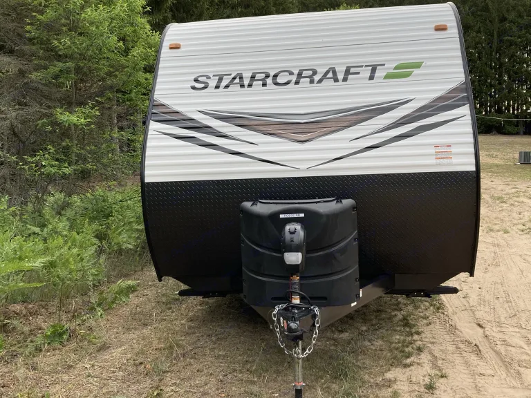 Brand new 2021 30 ft starcraft Autumn ridge double bunkhouse! Four season camper with insulated floors heat and AC ducts running through ceiling and floor for ultimate comfort! Everything you need for a modern camping trip sleeps up to 10 people has double bunk beds and one front bedroom with a door for privacy full kitchen full bathroom with shower and bathtub for the little ones. Comes with a smart TV and Amazon fire stick link your phone via Bluetooth to the TV to play stereo inside or through the speakers in the awning outside! Very modern with everything you'll need for a wonderful camping experience USB ports in the walls. Pots and pans coffee maker towels and toilet paper all included! Pets welcome! No cats allowed! Additional pet cleaning fees apply. Will deliver, set up and empty black and gray water tanks for additional fees. We have 2 canoes and 3 kayaks for rent as wellWhat's includedComes with sheets towels coffee maker toilet paper dish soapRecommendationsWe live in such a beautiful area the options are endless anywhere around traverse Bay or the leelanau peninsula is simply breathtaking not to mention the sleeping Bear sand dunes!Other things to noteAbsolutely no smoking of any kind no cigarettes no vaping and no marijuana smoke. If found smoking you will lose deposit and may incur additional cleaning fees. Pets are allowed with additional cleaning fee no cats allowed.