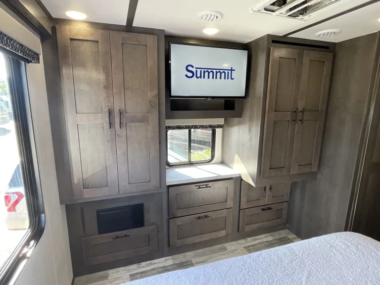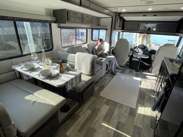 The cockpit is not only designed to be comfortable and easy to adjust but to be easy to drive. The living area is open, inviting, and great for entertaining friends and family. Your guests will be amazed at the comfort, great architecture, fit-out, and style. The outside of the RV seems more like an expensive piece of art than a motorhome. The huge full-size owning will turn the outdoor patio into a cozy oasis.