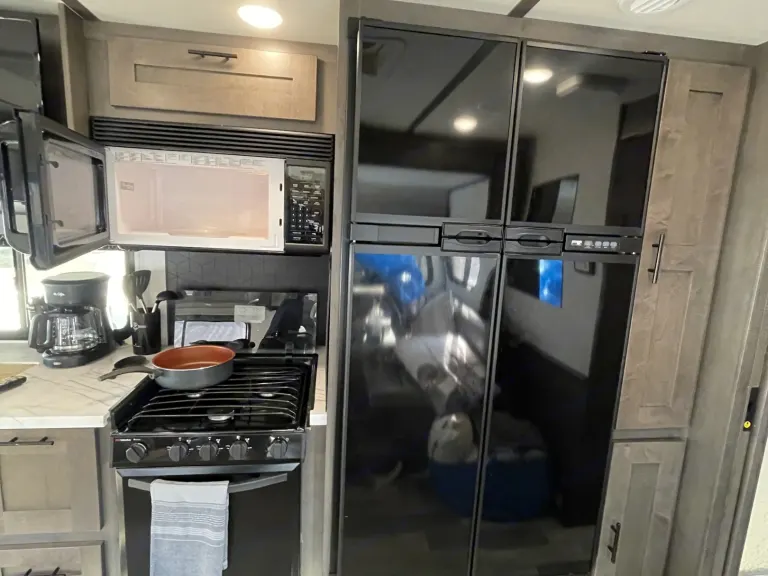 Travel cannot get easier. "Pegasus" our 30 feet Airbnb on wheels has it all and more for up to 5 of you. Imagine arriving at your perfect destination in style, rolling out the gas-burning fire pit, turning on the grill, and enjoying your favorite show on the outside TV.After a long day, there is plenty of space to spread out, take a hot shower, and get comfortable in the king-size bed in front of the panoramic window. Turn on the music and the mood lighting to set the stage for another exciting night on the road. Before the gang hits the road enjoy the luxury of the full kitchen with a double-door cooler. Cook up your favorite breakfast and head out to the wilderness. next destination. What an awesome way to travel!We are more than happy to drop the RV at your destination so you do not need to worry about driving. It is quite popular to get it dropped off for birthdays, weddings, and other social events. Ask us about campground info as well. We have amazing campgrounds in the area and we are experts to find those hard to come by spots."Pegasus" our Airbnb on wheels, it will get you the best of both worlds, a hotel experience on wheels with comfort, style, and mobility. The full bathroom, master bedroom, fully fitted kitchen, and diner will give you all the comfort you need on the road. Solar systems & generators can run all systems, including AC, while not hooked up. A stove, oven, washer & drier are just a few gadgets to help you feel at home. Did I mention that we have 2 TVs on board with cozy luxury leather sofa chairs?