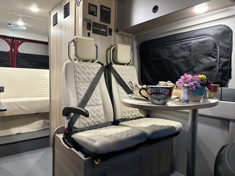 **"Meet The Ultimate Getaway Machine: The Winnebago Solis 59P"**Imagine your next road trip not in a cramped car, but in the blissful lap of luxury. Say hello to the Solis 59P, the king of the open road.This isn't just a van - it's your gateway to limitless adventures, your cozy retreat on wheels, and the ultimate basecamp for any outdoor activity. The Winnebago Solis 59P redefines the camping experience, blending comfort and convenience for families and adventurers who prefer the scenic route without the bulk of a traditional motorhome.Looking to break free from the daily routine? The Solis 59P is designed with your comfort in mind, featuring versatile seating that effortlessly transforms into a spacious bed, ideal for small families or couples. Rain or shine, the Solis 59P ensures your adventure continues, thanks to its retractable awning and efficient indoor heating system.For the family that thrives on adventure, the Solis 59P turns every journey into an unforgettable experience. Say goodbye to the endless "are we there yet?" with the pop-top roof that not only adds sleeping space but also brings a sense of excitement to every trip.Ideal for all-day sporting events, the Solis 59P serves as the perfect parking lot basecamp. Whether you're at Wild Rivers or any bustling location, it provides a comfortable and private space to relax between events. And for those working remotely, the Solis 59P offers an unparalleled option. Imagine wrapping up a workweek from the serene outskirts of your favorite national park or a secluded beach, all made possible with the inclusion of Starlink internet. This high-speed data option ensures you stay connected no matter where your travels take you, blending work and play seamlessly.Sports parents will revel in the convenience and comfort of having everything they need at their fingertips. With ample storage for gear and a fully-equipped kitchenette, the days of lukewarm beverages and subpar snacks are over. Enjoy fresh meals and cold drinks as you cheer on your team from the best seat outside the house.Experience the freedom of the open road with the Solis 59P, where every trip is an opportunity for discovery. Don't just dream about extraordinary adventures—live them.Book the Winnebago Solis 59P today, now featuring Starlink internet for those who need to stay connected. Elevate your #VanLife experience and make every journey memorable.What's includedComfortably accommodate your family or group with the Solis 59P, featuring versatile seating arrangements that include the front captain chairs and a flexible rear area. This layout is ideal for relaxing during the day or transforming into cozy sleeping spaces at night.The Solis 59P comes equipped with a compact refrigerator and microwave, strategically placed for easy access. This ensures you and your guests can enjoy refreshments and meals without unnecessary stops, keeping the adventure going smoothly.One of the standout features of the Solis 59P is its efficient use of space, particularly in the bathroom area. Unlike other models where space can be tight, the Solis 59P offers a comfortably sized bathroom, avoiding the cramped feeling often found in vehicle bathrooms. This thoughtful design means you won’t have to constantly look for public restrooms, adding convenience to your travels.When the bathroom is not in use, the space can cleverly be utilized for additional storage, making it easy to bring along everything you need for your journey.The Solis 59P is designed with care and attention to detail, ensuring it remains a reliable companion for all your travels.Additionally, the Solis 59P includes several upgrades to enhance your travel experience:Multiple 110V outlets for all your electrical needs