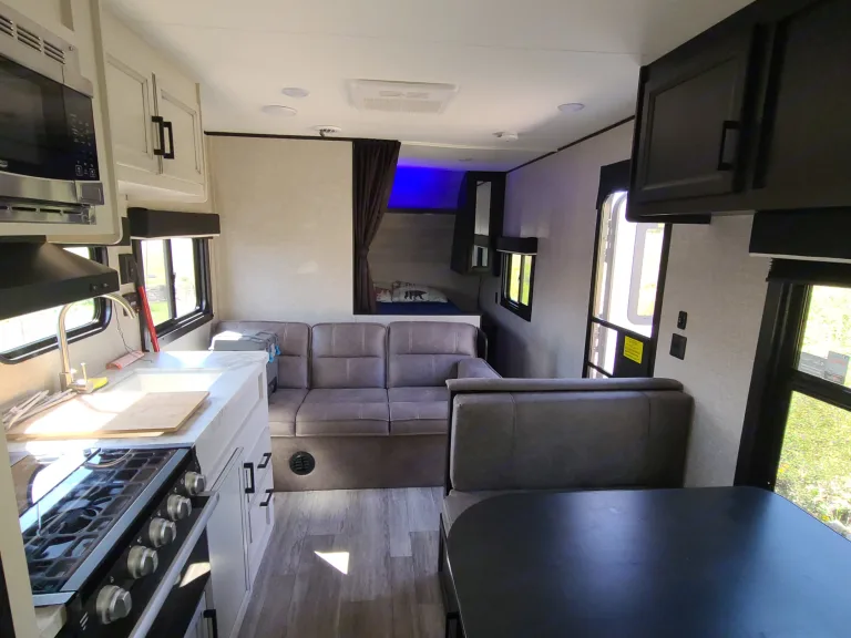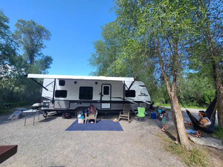 Queen bed up front, conversion sofa and dining table and full size bunks.Outlets throughout with USB chargers. Interior and exterior lighting with led lights under automatic awning. Bluetooth radio w/speakers inside and out. Have Cummins 4500w generator that I'll leave with trailer. Can power the ac and still plenty of power for the camper. Also have iSup paddle boards we can leave with the camper for your outdoor adventures on the water.Have fully stocked the kitchen to include plates and cutlery. Sheets, blankets and basic necessities will also be in trailer. If you have any questions or would like something specific in the trailer, we can prep it accordingly! What's includedLinens, table, rug, cleaning supplies, cutlery, generator, paddle boards.RecommendationsWe are located one hour south of Grand Teton National Park and one and a half hours from Yellowstone. With plenty of BLM land along the way. Our location is prime to drive through, load up and begin your adventure without towing the whole way to Wyoming.