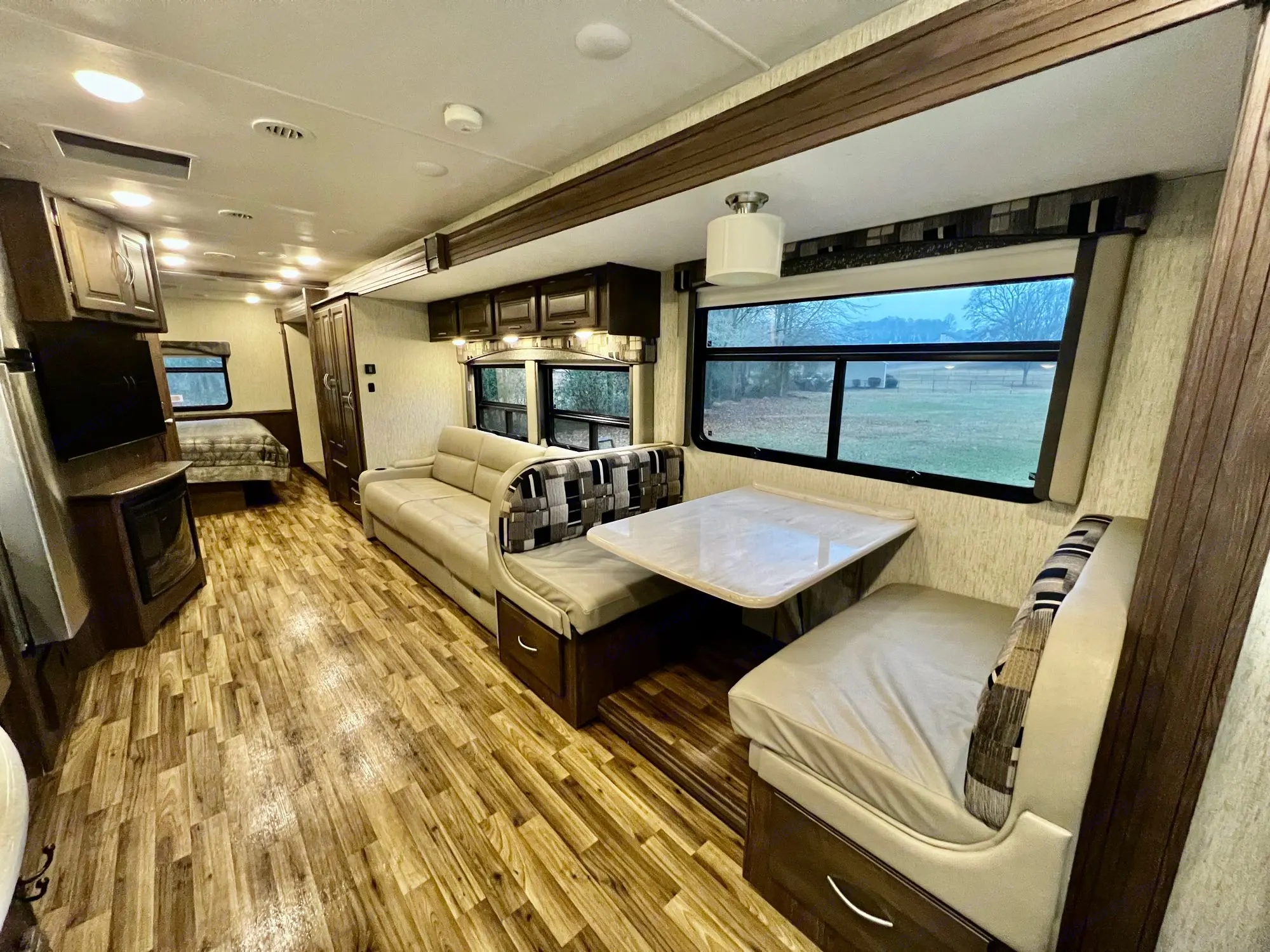 Take this luxury 2018 Coachman Mirada on your next adventure! Amenities galore! Super spacious interior with a cozy fireplace and queen size bed. Outdoor kitchen for game day or cookouts in the great outdoors!What's includedFresh Linens