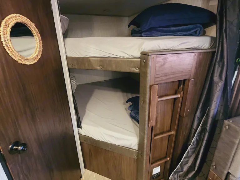 • Perfect for families, this RV sleeps 8 with comfy bunks and a private queen