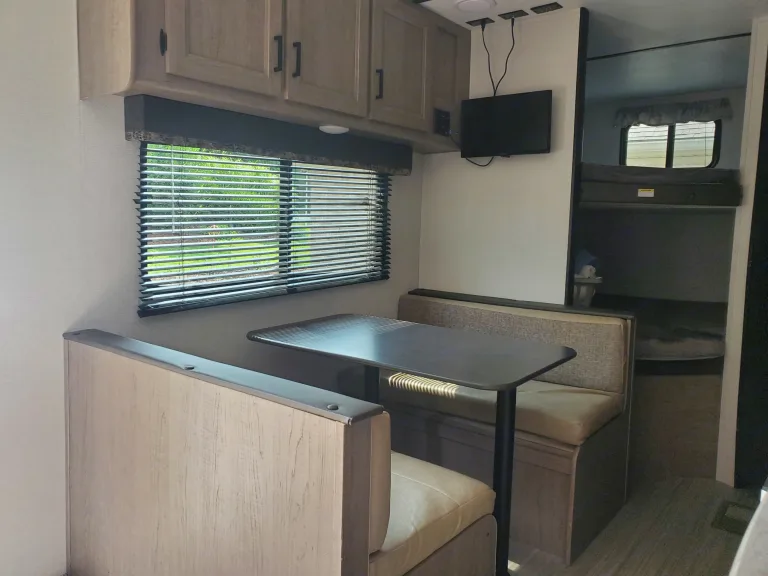 2 TV's (1 smart TV) inside / outside stereo. What's includedplates, cups, utensils, paper goods, measuring cups, dish soap, kitchen towels. bath towels, fresh linens on the 3 standard beds, 6 pillows, 4 camping chairs. RecommendationsBring extra blankets/ sleeping bags if auxiliary sleeping spaces used. Other things to noteFull Electric/ Water/ Sewer Hookup required for your rental.