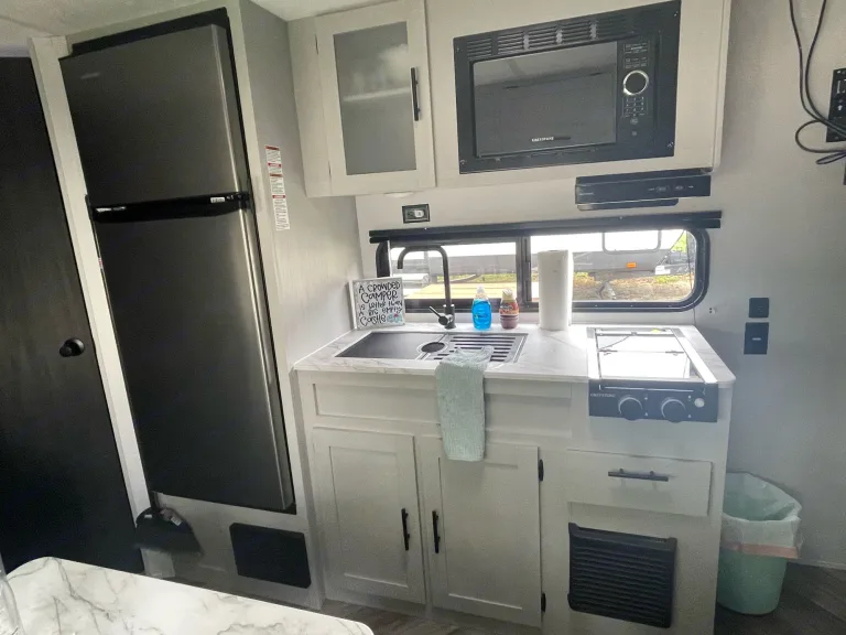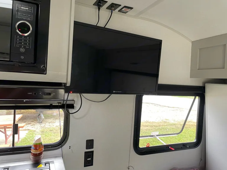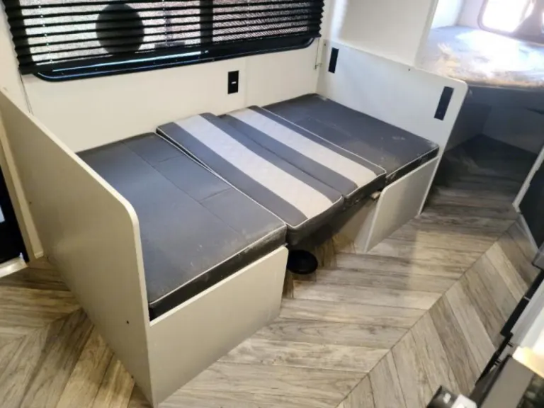 Pet and kid Friendly Travel Trailer! Take a weekend trip with your furry friends and family! This is easy to tow as it's lightweight but packed full of amenities. This unit has an outdoor shower, outdoor kitchen with griddle and mini fridge, pass through storage, two bunk beds and a queen size murphy bed. It is a 30amp service. This unit has solar power hooked up, 11cuft fridge to bring tons of food. Full shower, sink, and toilet. Power adjustable awning with led lights, all linens, kitchen utensils, silverware, pots/pans, plates, bowls, cups, etc..Everything you need to get you to your next adventure. Rent today to start making memories that will last a lifetime.What's includedFully stocked with plates, silverware, cups, bowls, etc. everything you need to get you out and camping. Grey/Black hose, Fresh water hose with 0.5 micron water filter, firestick, hd tv antenna for local stations, 32"tv, Cold rooftop a/c, and heater. It has a 6 gallon on board water heater for those cool night hot showers. This Camper has it all!All linens are washed and sanitized after every rental. All surfaces are cleaned and sanitized after every rental. RecommendationsHave fun! Make memories! Other things to noteFurry friends welcome!Please ignore drop off and pick up times. These are pre-set.Pick-up is 4pm unless prior arrangements have been made