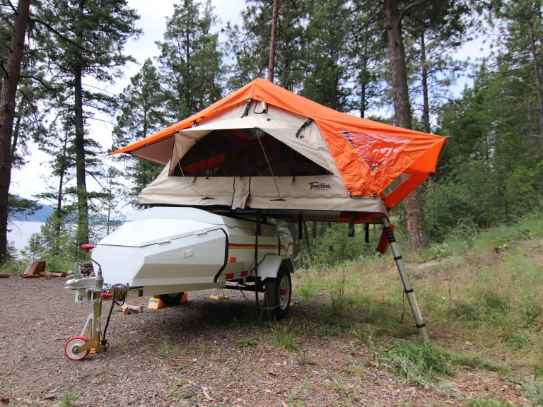 - Recommended for extended trips, or warmer weatherRecommendationsThe Okanagan is filled with many beautiful Provincial Parks and Rec Sites, including Fintry Provincial Park or Evely rec site, both just minutes from the pickup location! Bear Creek Provincial Park is also just a 20 minute drive away.We have camped quite a bit ourselves all over BC and if you have any specific preferences and goals for your trip we are happy to discuss additional recommendations. Other things to noteThe tent is offered WITHOUT sleeping bags or bedding. The exception being a mattress cover/fitted sheet which is laundered between guests. Guests must supply thier own bedding and pillows. Household bedding up to queen size works well!Renter is requested to provide their own two inch ball hitch. The ball must be situated at a height of approximately 18 inches from the ground (plus or minus a couple inches is fine). The tow vehicle must all be equipped with a functioning 4 pin connector.We are very much pet people so welcome your pets as long as they are not destructive or messy.While the main storage within the trailer can technically be accessed (carefully) while the tent is deployed, it is highly discouraged. Our recommendation is to use the storage capacity of the trailer to carry gear to and from camp but unload everything that will be needed prior to the setup of the tent. Alternatively the tailgate can be left open and bins can be slid in and out from the back. Opening the main storage area of the trailer MUST NEVER be done with anyone in the tent. The storage area must be closed and fully latched prior to anyone entering the tent.There is no official static weight rating of the mounting of the tent, it has been installed by a reputible shop, and tested by us with a little over 400lbs of occupants in the tent with no indication of nearing a limit. That said, because of our limited testing we can only recommend a maximum of 400lbs, any damage caused by overloading will be the responsibility of the renter.The trailer and tent have pinch points, sharp angles, and springy poles, which may mean this setup is not suitable for all ages. Guests are responsible for determing if the setup is right for their camping party.To ensure safe experiences with wildlife, please store garbage and food items (including the included cooler) in your vehicle, not the trailer/tent.While we do not prohibit the use of the trailer on dirt roads, and understand many of the best campsites are located along them, please only stick to maintained forestry roads and slow down when the road is bumpy. This is not an offroad trailer.