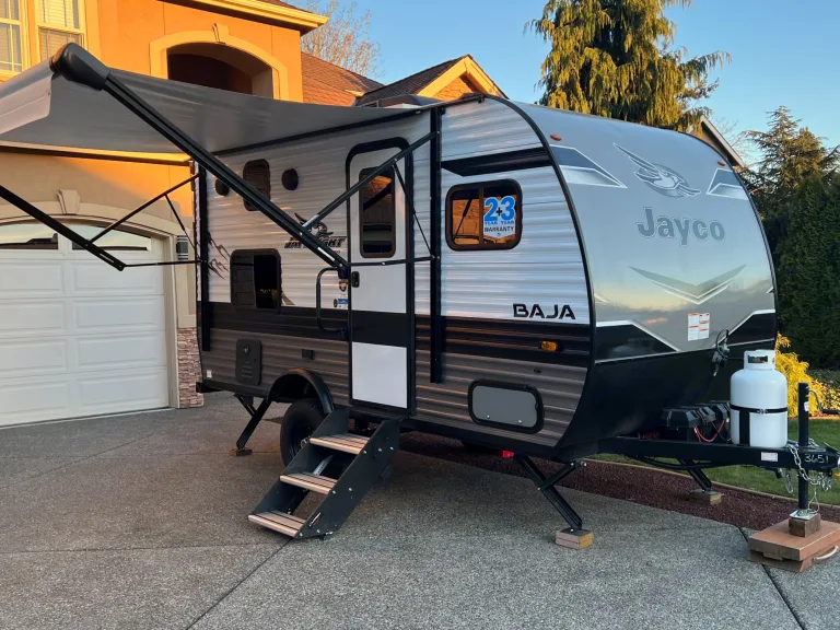 We provide: 1 full propane tank, all cords, hoses, wheel chocks, stabilizers. In the kitchen: dinette serving for 4, mixing bowls, strainers, kettle, stock pot, 2 sizes of pans and everyday utensils. Electric Kettle, and kitchen towels, hot pad. Bedding is provided if requested at no extra charge. Power awning.