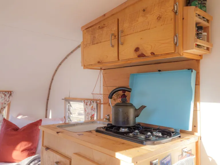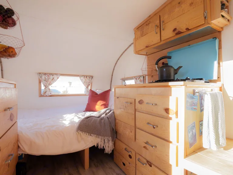 Host was responsive and helpful with suggestions. The trailer is quaint and has a homey old school rustic appeal. It was perfect to give us a bit of shelter from the desert in the wintertime. It made the camping experience a total joy.