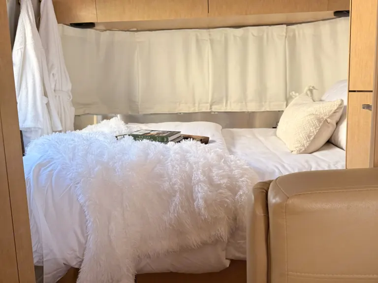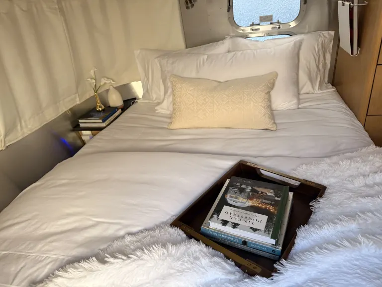 A beautiful airstream in perfect condition awaits you. Where luxury and nature meet. This Flying Cloud has been dressed in the finest amenities a guest could want in an Airstream. If you’ve thought of it then it’s probably already been provided! We aim to please. If you’d like the fridge or bar stocked, we can do that for an additional fee. We deliver as a requirement to any RV campground within a 200 mile radius of the Bakersfield area. Campground site must have a minimum of 30-amp electric and water hookups. We set up and tear down for you so all you have to do is show up and enjoy!What's included