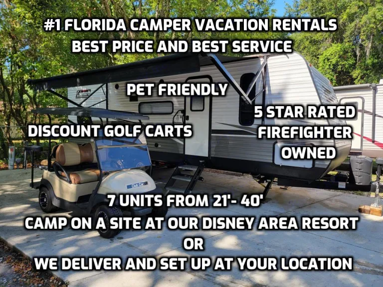WE Will Deliver AND SET UP OUR Travel Trailer Camping Units TO Your Location OR Campsite...OR...WE Will SET UP ON A Campsite AT Mill Creek Resort IN Kissimmee FL. 34744