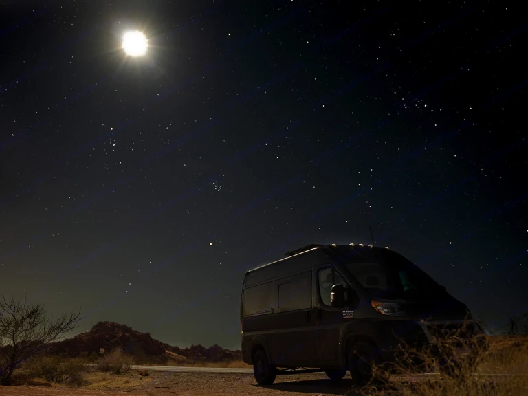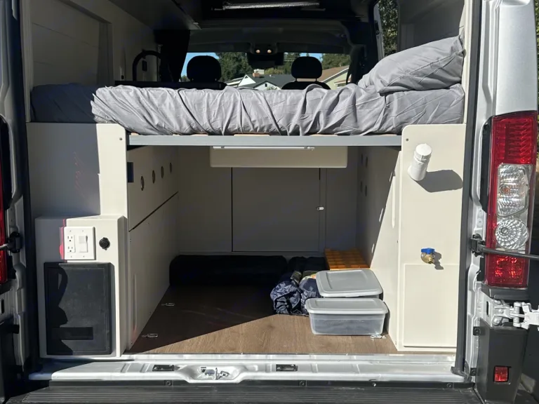 Brand NEW Promaster with Solar Panels!! Come try out Van Life!4 Season Van!OFF Grid 12V Air Conditioner and Cabin Heater!! Both the Air Conditioner and the Cabin Heater work while the vehicle is turned off. Heater is powered by gasoline in the Vans fuel tank and the Air Conditioner is powered from the 200AH Lithium battery!All of my Vans are custom builds, what starts as an empty cargo van is now a luxurious and comfortable house on wheels. Walls and ceiling are double insulated (Reflectix and 1-2" poly iso foam), this means keep the cold air in and the noise out. The house is built in a 2023 Ram Promaster 136" wheelbase high roof van. High Roof means even a 6'2" person can stand up in the van!!"Brad" has a Maxxair fan that can exhaust the hot air out out or when the sun sets you can bring the cool air in. A 320 Watt solar panel attached to a state of the art solar charge controller keep the Renogy Lithium 12-Volt maintenance free 200 AMP hour house battery charged. I also installed a battery Isolator so the vehicles alternator charges the batteries while you are in route to your next campsite. Almost everything in the interior is run off a low voltage battery sipping 12 volt system. There are 2-110v plugs connected to a fully automatic 2,000 Watt Pure Sine Wave inverter so if you need to charge your laptop or want to plug in something that needs a little more juice.The passenger seat swivels for added seating in the living area, the main bench is great seating for 2 and also has a flip top for additional storage. There is also a table that pulls out from under the bed so 2 people can dine or work side by is Camper Van is the perfect choice if you are a little intimidated to drive a big bulky motorhome but don't want to deal with the hassle of setting up a tent.There are USB plugs conveniently placed next to the fixed Full platform bed with a 6" memory foam mattress as well as above the backsplash in the kitchen area to keep your phones or tablets charged. 8 LED lights are connected to 2 zones in case you want a low light for reading or just to set the mood. The 78 Liter 12v fridge will keep all of your food and drinks icy cold your entire trip without the need for ice, it also has a small freezer compartment for your favorite frozen treats. There is a massive 20 gallon fresh water tank connected to an outdoor shower and a stainless steel kitchen sink with a 20 gallon grey tank that only takes seconds to dump.You want to bring any gear? There is a huge garage area under the bed that is accessed from inside the Van or the back doors, there are conveniently placed LED lights in the garage area for midnight adventures. With upper cabinets stretching from the driver seat all the way to the rear of the van there is ample storage for dry food and really anything you can imagine needing on your trip.Sorry no toilets in my Vans but I do build the bench around the dimensions of a Camco portable toilet. It has a 2.5 gallon fresh water tank and a 5 gallon waste tank. Fits perfectly inside of the bench so you close the lid to the bench when it is not is use and you don't see it or smell it. You bring a toilet with you for your trip and you take it home, if you are unable to bring a toilet you can grab a new one from me and I don't want to ever see it again. You keep if for camping, boating or your next trip in one of my Vans!The pick up and drop off time is not set in stone. My rentals run on a 24 hour calendar, if you pick up the vehicle at 2:00 it will need to be retuned by 2:00 on drop off day. Any additional time added will be billed to the customer at $20 per hour. Please respect my time and coordinate with me pick up and drop off, I am more than reasonable with advance notice. If you know you are going to need extra time you can add 4 hours to your rental for $50, check the add ons when checking out.I provide you for free with each rental all of the basics you will need. Butane cook top, Plates, Cups, Bowls, Silverware, Pot, Pan, Soap and Sponge, Spatula, cutting board, Step Stool, Trash Can with liners, Bubble Level, Broom, 2 camping Chairs, Outdoor Rug, Leveling Ramps, Fresh Water Hose, Sheets, Pillows, First Aid Kit, Jumper Cables, Fuse Repair Kit, Window Coverings for all windows and all of the instructions needed to have a memorable trip.I have everything you could want to make your trip a little more comfortable, just check my Add Ons during check out.Happy Camping!!
