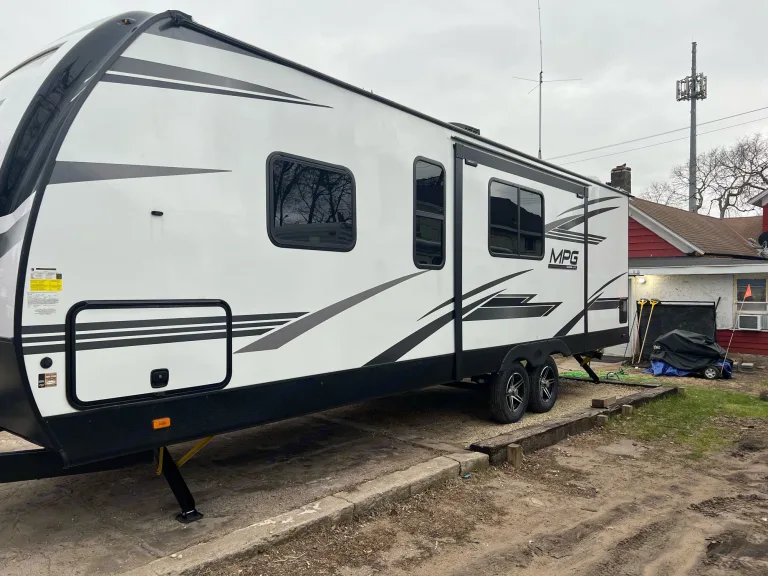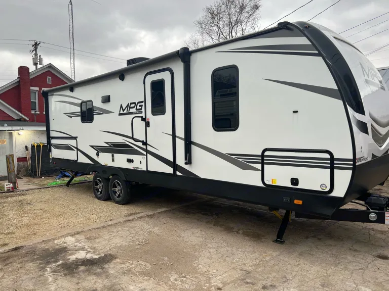 2021 MPG if I am delivering it please go into add-ons and click set up and if where you are staying does not have water hook ups or sewer please click that add-on as well king size bed will come with fresh bedding with every rental comes with pots and pans, rags, hand towels, table lays down into a bed and the couch pulls out into a bed has heat and air conditioning also has a very nice big bathroom with two sinks and a nice size shower.