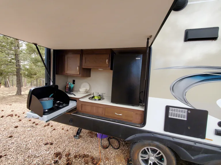We absolutely loved renting Etta Rae! The trailer was comfortable and everything was so easy to use. The outdoor kitchen was very functional, we used it daily. The kitchen was well stocked and organized. The bathroom was huge and functional, and the king sized bed was an added luxury. Jeff and Tracey were really knowledgeable and helpful and we loved working with them. They had our best interests in mind and even helped us to save money! We will absolutely rent from them again. We could not have asked for a better rental experience.