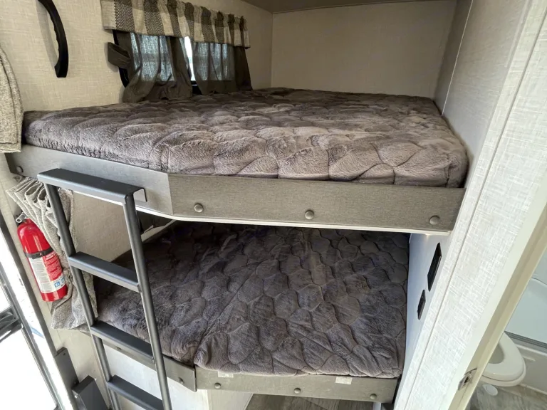 Bunkhouse setup at the rear with 2 double-size bunks & 1 single-size bunk bed— perfect for the young whipper snapper or extra guests (sleeps up to 9-10 total).