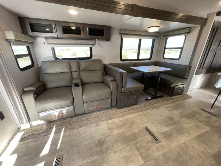 King U-shaped dinette+ theater reclining seating — plenty of spots to kick back after a long ride.