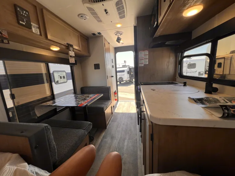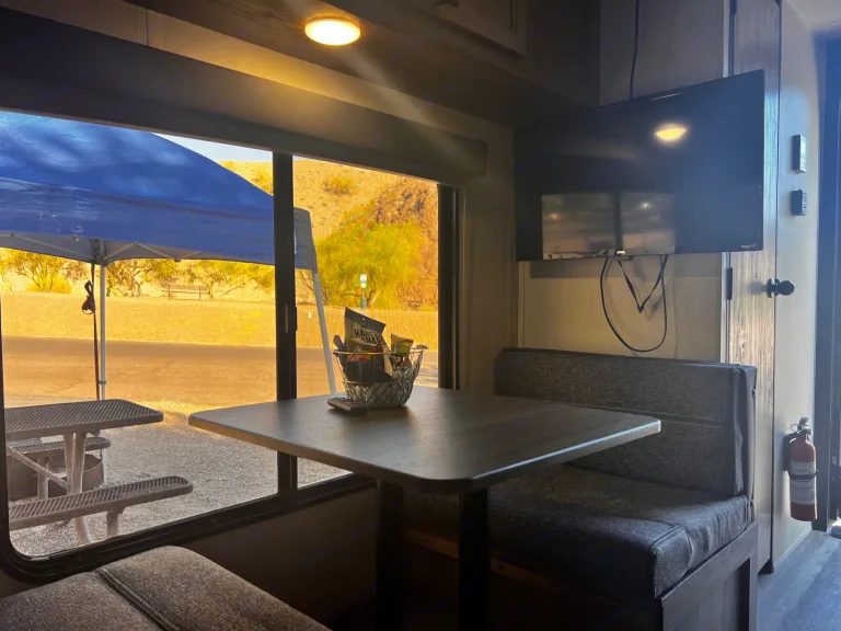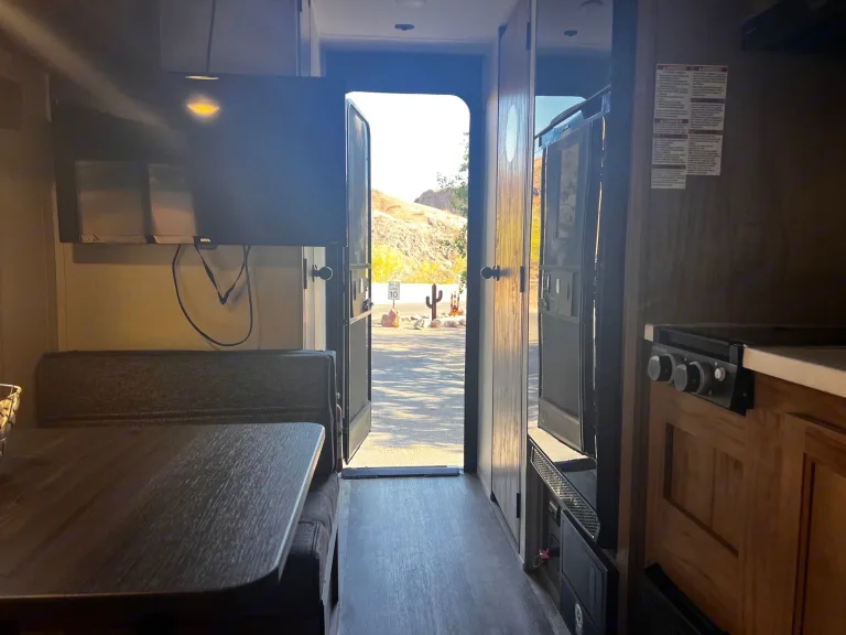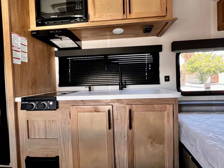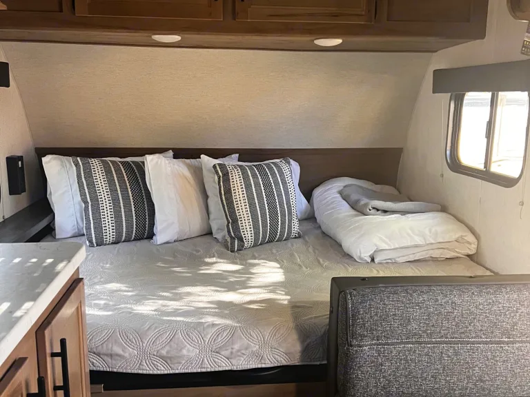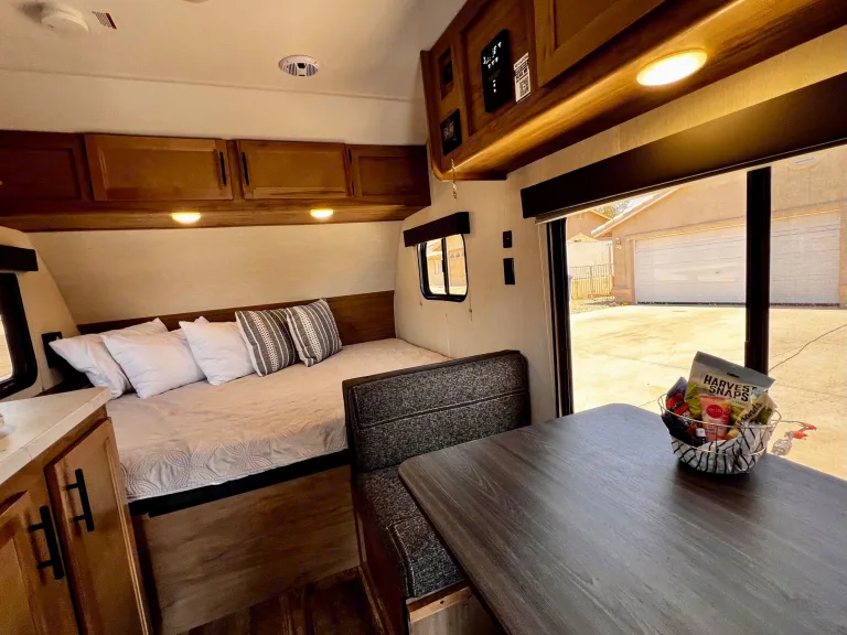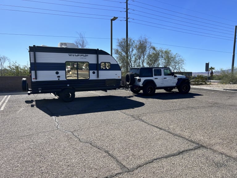 Brand new travel trailer, great for couples. Pet Friendly Sleeps up to 3. (Delivery Only)Very spacious floor plan with large windows throughout so you can enjoy your view!All the essential bedding, towels, dish soap, toilet paper included with no additional charges.Delivery and setup in Parker, Havasu, Laughlin, Needles, Bullhead within 100 miles. Send me a message if you have any questions.What's included12volt full size refrigerator and freezer.