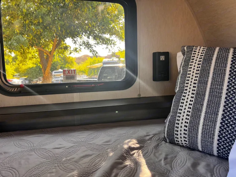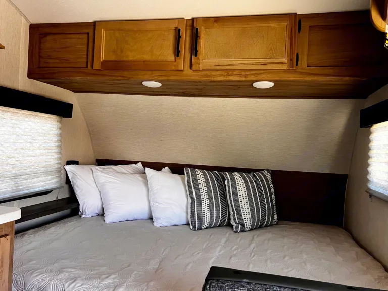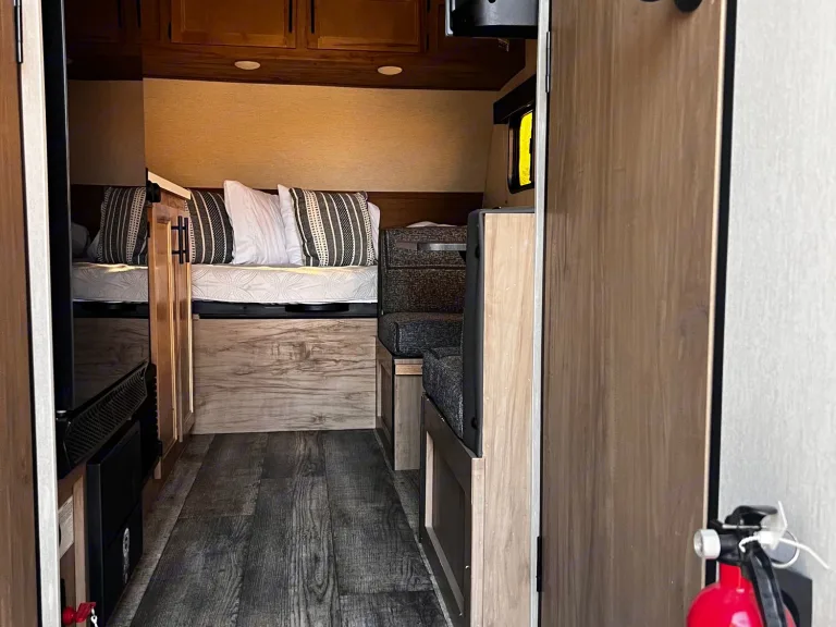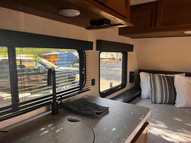 Outdoor TV mount(must request tv), Interior/Exterior LED lighting creating nice atmosphere. Equipped with Bluetooth speakers and subwoofer that can be synced both interior & exterior. Large windows throughout make the trailer feel open & bright. The sunlight & the vaulted ceilings make the trailer much more open adding a layer of comfort. Queen size bed with sheets and pillows provided Other things to noteNo smoking in or outside with doors or windows open