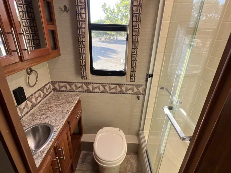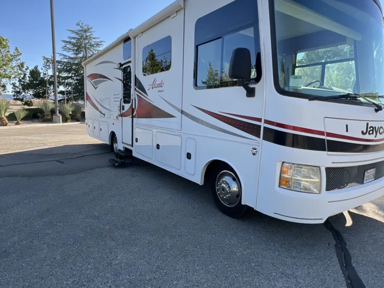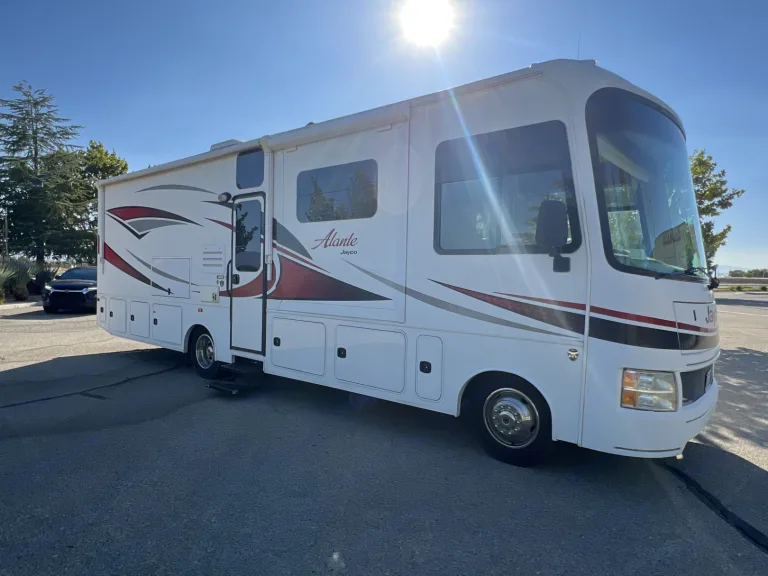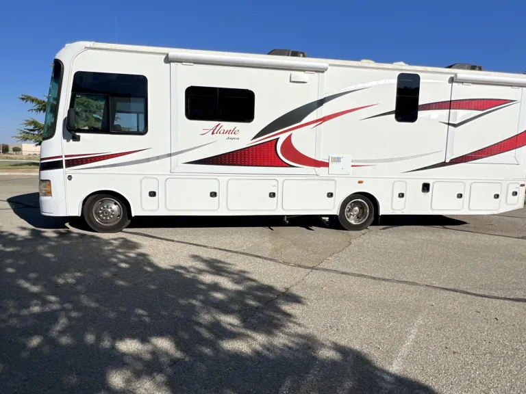 2 AC's systemThe exterior of the Jayco Alante features a modern and aerodynamic look, with premium graphics that are sure to turn heads wherever you go. The large windows and power awning make it easy to enjoy the outdoors, whether its using the outside entertainment center, hosting guests, or just enjoying the views.Inside, the kitchen is equipped with a large 4-door refrigerator, microwave, stove with oven, and ample storage space for all your cooking essentials. The living area features comfortable Thomas Payne Theater style recliner seats, a flat-screen TV, Dish Sat System, Roku Streaming Sys and DVD player. The owner installed WiFi and Cell Signal Boosters to increase connectivity and productivity. The rear, private bedroom has a queen-sized bed and wardrobe with far more closet and drawer space than most coaches of this size. An additional wardrobe for your guests is provided in the hallway to the bedroom. A forward drop-down bunk bed and convertible dinette provide guest accommodations. The bathroom has a full shower, upgraded sink/faucet and plenty of cabinet space. An owner installed Garnett SeeLevel Tank Monitor System makes monitoring tank levels (black, grey, fresh, LPG) both simpler and more accurate.Driving the Jayco Alante is a breeze, thanks to its powerful 320hp V10 engine and 6-speed transmission. Advanced safety features include the SafeTPlus Steering Stabilizer, power disk anti-lock brakes and remote tire pressure monitor system (Tpms). The center console mounted Pioneer AM/FM/DVD Radio, with Apple Carplay/Android Auto, provides entertainment while underway (and is SiriusXM capable). An owner installed Nav/Instrument Pedestal provides easy mounting areas for essentials such as Tpms monitor, phone, GPS Nav and Toad Brake Monitor, within easy reach of driver. Owner installed insulation on engine doghouse and forward underfloor keeps engine noise and heat from encroaching on the cabin. The Onan 4000 genset provides full power when underway.Site setup is made simple with the hydraulic auto-level system. With three full passthrough lower compartments, four lower equipment bays and five other lower storage bays, you can bring along all your camp gear without feeling cramped.RV Rental Information & PoliciesRental is available by the hour, per day, or overnight, with rates varying accordingly. Bookings are limited to special events, including photoshoots, filming, and weddings. Not for traveling for recreational travel.Festival Friendly