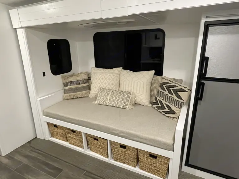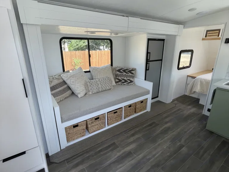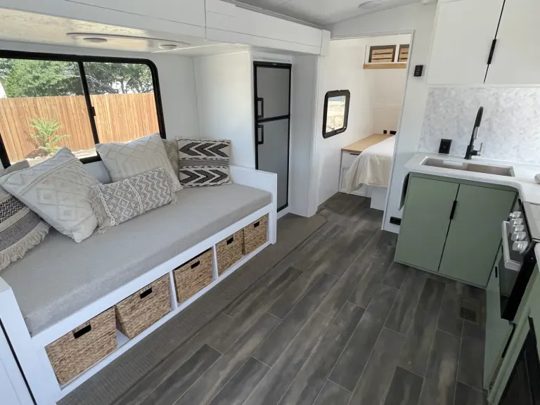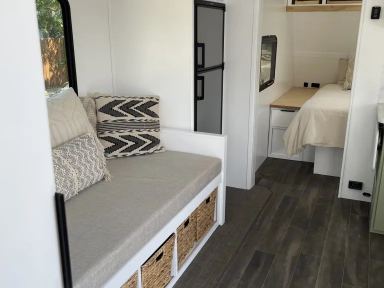 My name is Dani and my husband name is Drew! We are both 24 years old. Drew plays professional baseball and I work from my phone on Instagram. We travel in our trailer during the off season of baseball and rent it out during the season! We love being able to live in new places and want others to be able to share in that same experience!