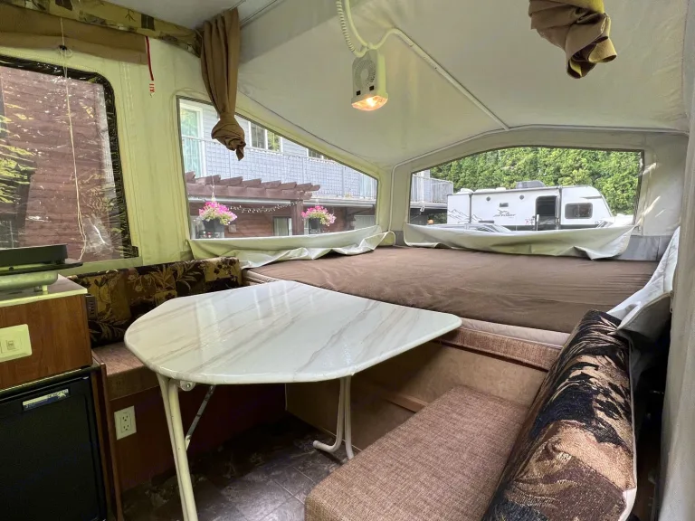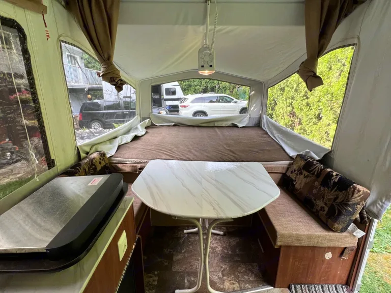 It have an exterior storage on A frame. This feature is very useful and unique from other tent trailers.