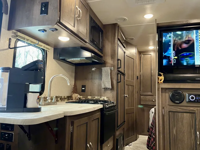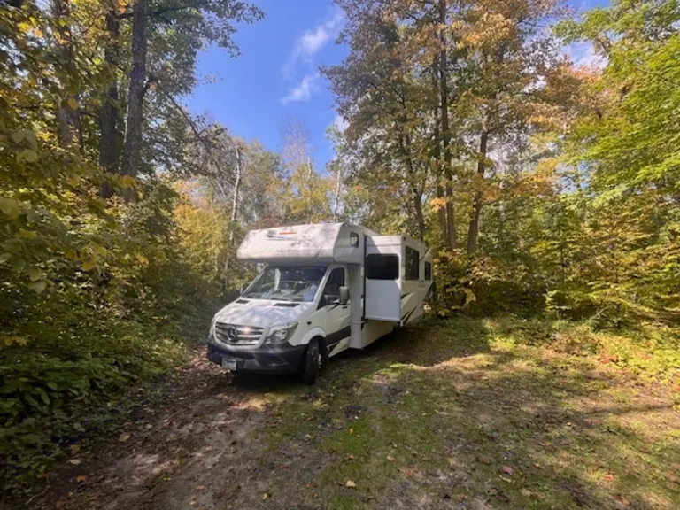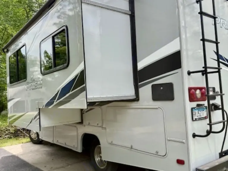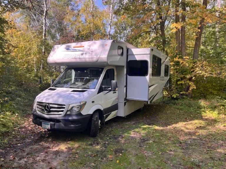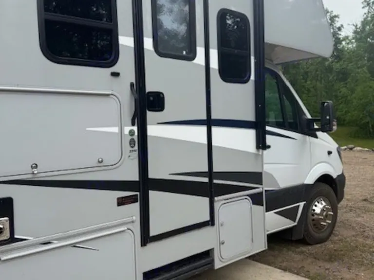 Are you ready for the ultimate road trip?! Kodi is the rig for you! Whether you are a couple looking for a roomy rear bedroom, or a family with kids, this Class C RV is the perfect size and set up for you. Coming in at only 25 feet, but offering a huge full side slideout, Kodi is roomy but versatile at the same time.Stationary rentals and delivery: We do offer stationary rentals at a reduced rate and delivery for Kodi. Contact me for pricing!Please note: insurance is required. Insurance packages will be available for your viewing at checkout and range from $28-90/day. We also require roadside. Renters can contact their insurance company to see if they offer this coverage. Previous renters have been able use their own insurance (providing it offers proper coverage) to save them money, however I have heard many companies will not cover this. You must provide me with an insurance binder showing proper coverage for the value of the vehicle and liability if you choose to go this route. Outdoorsy guests must contact Outdoorsy to see if they can implement a change.Living area: As you walk in, there is a U-shaped dinette, chair, and the front seats swivel and recline so there is room for everyone. The entertainment center slides out and has a large swivel TV, sound bar, DVD player and sound system.Sleeping space: In the back of the camper, there is a queen bed, in the middle, the U-Shaped Dinette converts into bed, and above the cab, another sleeping area for the kiddos or young at heart.Kitchen: For our chefs, a large dual fuel fridge and freezer, stove, 3 gas burners, dual sink, and coffee bar area with a Keurig and pods (coffee pot available upon request). As with all of our campers, Kodi is fully outfitted with dishware, pots and pans, silverware, disposable plates, paper towels, napkins, salt and pepper, olive oil spray, dish soap, sponge, and towels, and more.Storage: There is storage in the kitchen, and several cabinets and closets in the rear bedroom area. Outside, there are several compartments for storage and we also have an optional luggage rack that we can send with you for no charge. Kodi also has a hitch if you want to bring your bikes or other toys along.Outdoor living space: There is a large power awning, outdoor entertainment center with TV and soundbar, propane hookup for your griddle or grill (we have a Blackstone for rent if you don't have one), outdoor shower, and plenty of storage. We provide a large mat and are happy to also provide chairs if needed. We also offer a screen tent for rent if you are going somewhere with bugs/need shade.Driving Experience: Kodi is set up on a Mercedes 3500 Sprinter Diesel Chassis. Diesel means better MPG than your gas RV's. The driver's cabin has comfortable seats and back up and side cameras for peace of mind. For passengers, there are 4 additional seatbelts in the back around the table and on the chair. There is also a car seat tether on the table.Power: The RV runs on 30-amp power and also has a built-in propane Generator. We include 4 generator hours per day and the rest is charged by the hour. There is a solar panel on top and we do have a plug-in solar panel for additional off-grid options.
