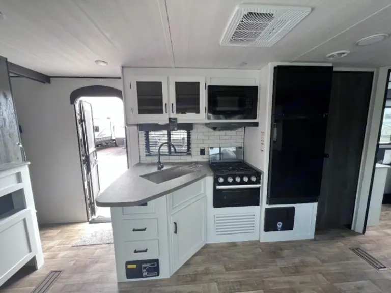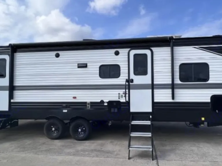 Roll through to your destination and enjoy this spacious Hideout with your family. With multiple sleeping options including large bunks, double entry, and a pantry, this makes for an excellent escape to paradise. Our brand new Hideout also includes a microwave, stove, referigeraror, air conditioner, heater, and solar panel. What's includedKitchen cookware, utensils, shampoo, conditioner, body wash Other things to notePets welcome!