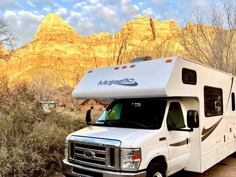 Explore Las Vegas, the Southwest and beyond in this Thor Majestic. Equipped with a powerful V10 engine, onboard generator, water heater, onboard shower, stove, ice-cold fridge and thoughtful amenities, this rig is ideal for the weekend adventurer and the seasoned (RV) traveler. Bring your friends and your fur babies** along and start making memories you will cherish long after returning home. We look forward to having you behind the wheel of your next adventure.**Due to personal allergies, no pets are allowed