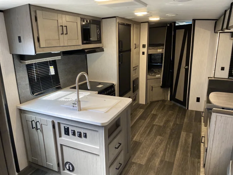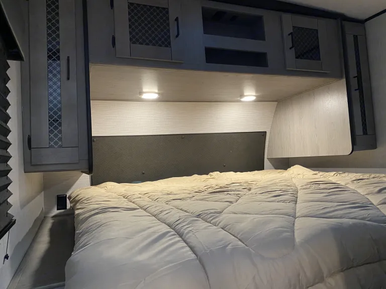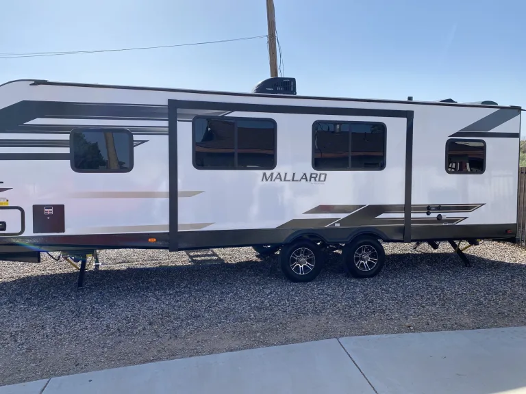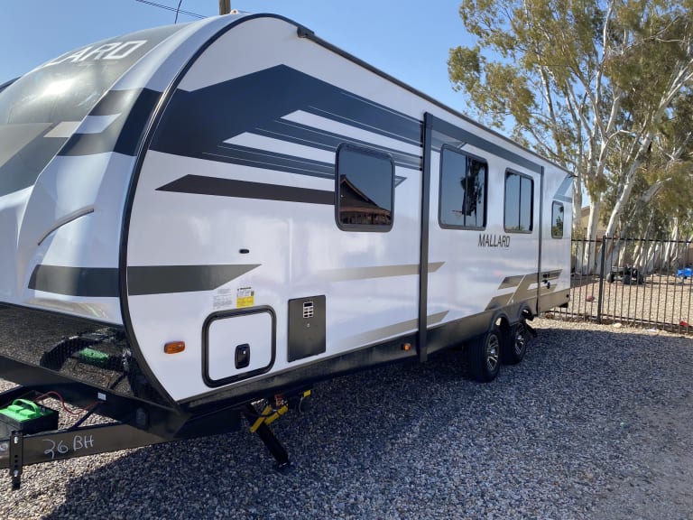 Brand new travel trailer perfect for the whole family. Comfortably sleeps 6-8 people, comes with a king size master bed with mounted swivel TV. Watch it from the bed or the living area. Also has two twin bunk beds as well as a couch and table that turns into two beds for more sleeping room at night. Fully functional heated shower, restroom, ice cold AC and a full kitchen. Trailer also has a stove, fridge and sink outside for more accessibility as well as an outdoor shower. Travel in comfort and style!What's includedI will provide 3 rolls of septic safe toilet paper and cooking utensilsDumping only required if renter is unable to dispose themselves. All the add-ons, renters may provide their own generator, propane tanks, and solar panel or I have them available for you to use. Feel free to ask if you have any questions. Other things to noteYou must use septic safe toilet paper if the provided rolls aren't enough. No smoking and no pets inside the trailer