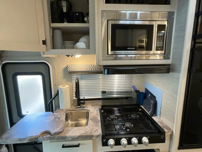 Embrace the Nomadic Lifestyle in this modern RV, can sleep up to 5 adults comes equipped with kitchen kit, queen bedding and more.Kitchen