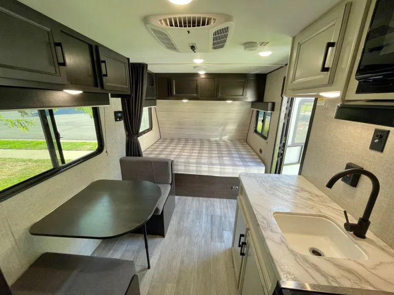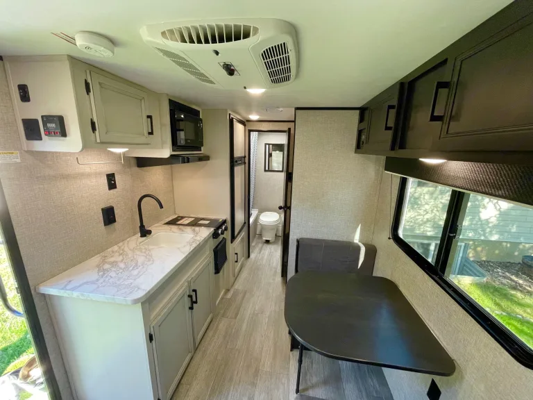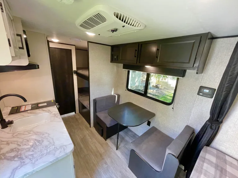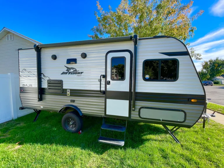 This 2022 Jayco Baja trailer is the perfect size. Sleeps 4 with a full bath. Has solar power that powers all of the lights and radio. 30 gallon propane tank will keep you with hot water, cold refrigerator/freezer and heater. It also has 30 gallons of fresh water. For any additional questions please message me thank you.What's includedFresh clean towels, bar of dove soap, fresh water, toilet paper, 3 fold out chairs. Full 30 gallon propane tank, full 30 gallons of water.RecommendationsBring your own linen/sleeping bags, pillows, paper plates and kitchen ware, Personal hygiene.Other things to noteThe two bunks can sleep up to 300lbs each. They are big enough for an adult.