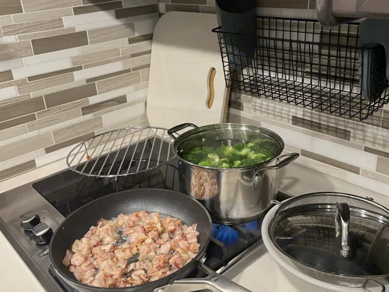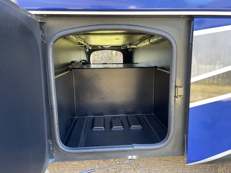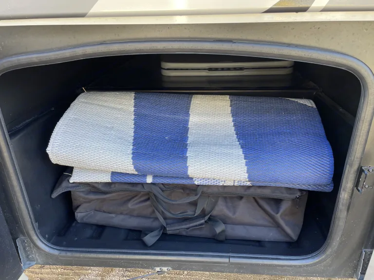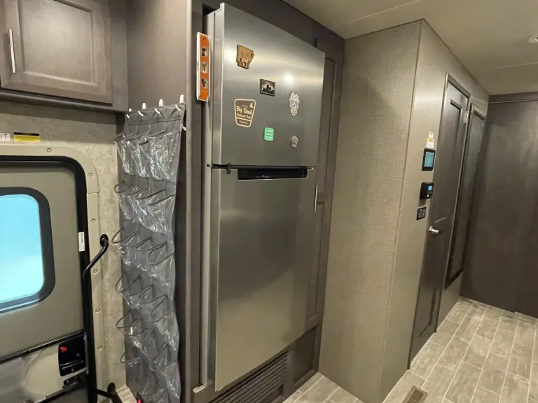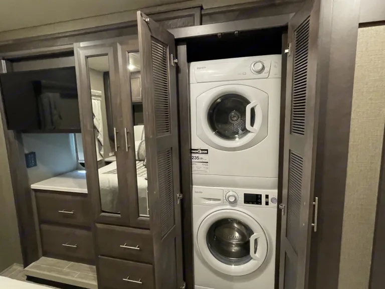 This unit also has a stackable washer and dryer to make those longer adventures more manageable.